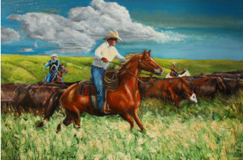 Bringing In The Herd 24x36 Oil
